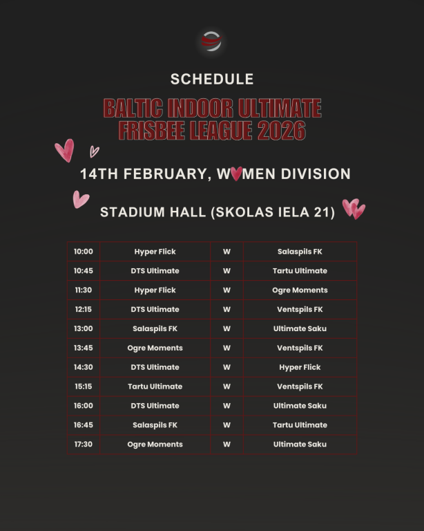 februārī visas dienas garumā tiks aizvadītas sieviešu divīzijas spēles. Savā starpā sacentīsies tādas komandas kā Hyper Flick, DTS Ultimate, Salaspils FK, Tartu Ultimate, Ogre Moments, Ventspils FK un Ultimate Saku.