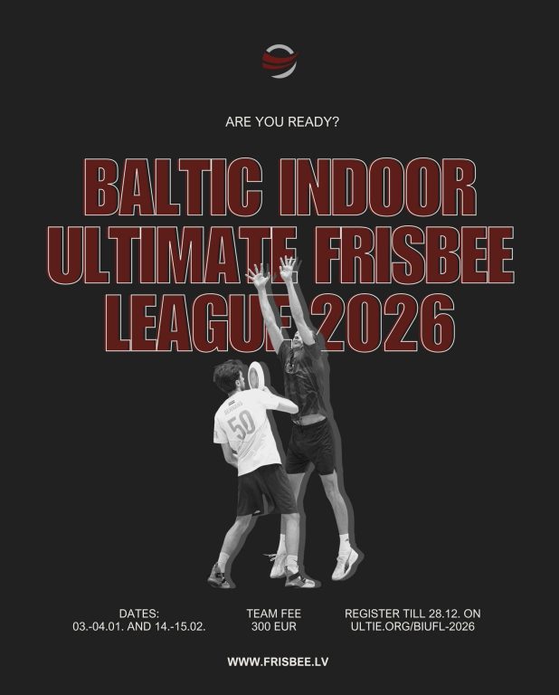 Aicinām komandas pieteikties Baltijas Telpu Ultimate Frisbija Līgai 2026– aizraujošam divu posmu turnīram, kurā tiks noskaidroti labākās komandas Baltijā.