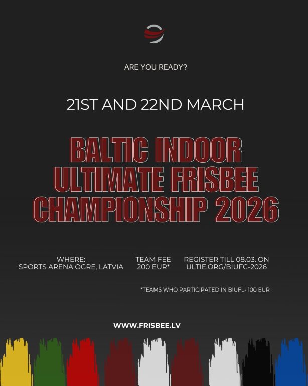 Izsludināta pieteikšanās Baltijas Telpu frisbija čempionātam 2026!